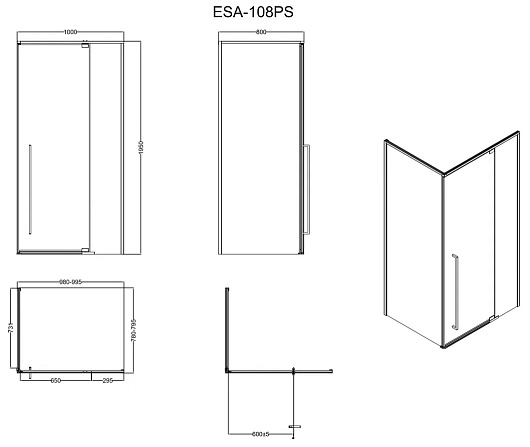 Esbano Душевое ограждение ESA-108PS-B 100/80
