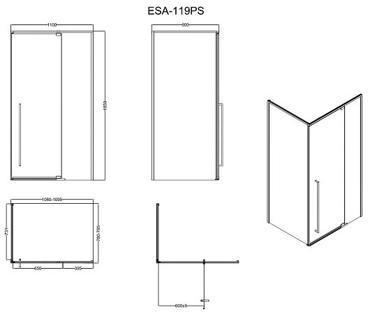 Esbano Душевое ограждение ESA-119PS-GM 110/90