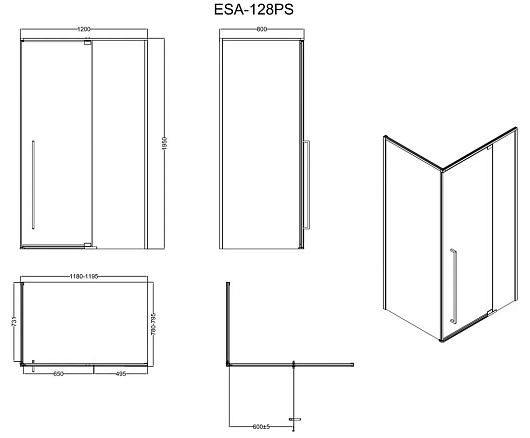 Esbano Душевое ограждение ESA-128PS-B 120/80
