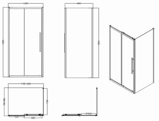 Esbano Душевое ограждение ESF-128PS-GM 120/80