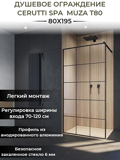 Душевая перегородка Ceruttispa Muza T80 профиль черный стекло прозрачное с рисунком - арт. 9441.
