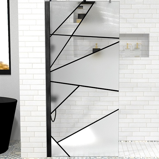 Душевая перегородка Ceruttispa Pick T90B профиль черный стекло матовое/прозрачное с рисунком - арт. 10378.