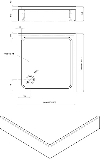 - Размер (ШхГхВ): 800х800х150 мм.