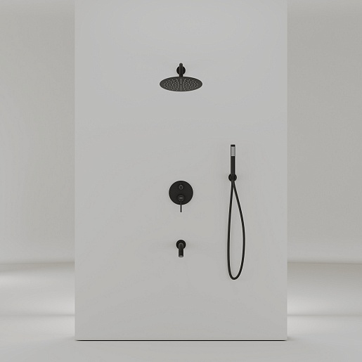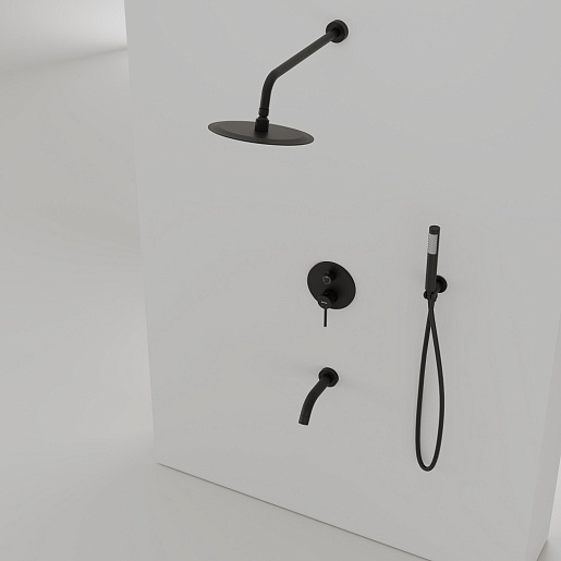 - Состав комплекта: верхний душ, душевой гарнитур, излив, смеситель для ванны с душем, шланговое подключение.