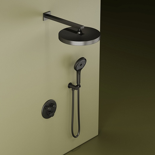 - Состав комплекта: верхний душ, душевой гарнитур, смеситель для душа, шланговое подключение.