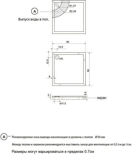 Душевой акриловый поддон Aquatek Альфа 90x90 - арт. DPL-0001.