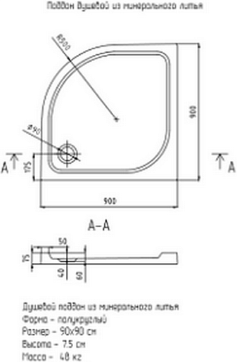 - Размер (ШхГхВ): 900х900х180 мм.