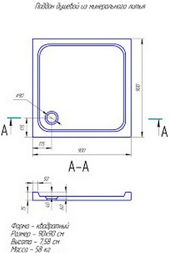Душевой акриловый поддон Aquatek 90x90 - арт. DP-0000004.