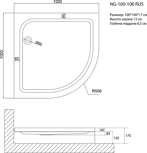 - Размер (ШхГхВ): 1000х1000х170 мм.