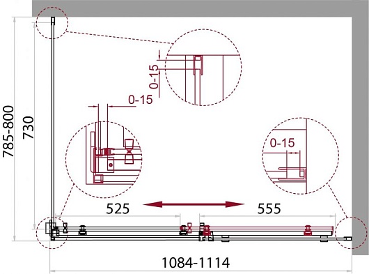 - Стекло 8 мм. C (прозрачное). Профиль Cr (Хром), Nero (Чёрный).