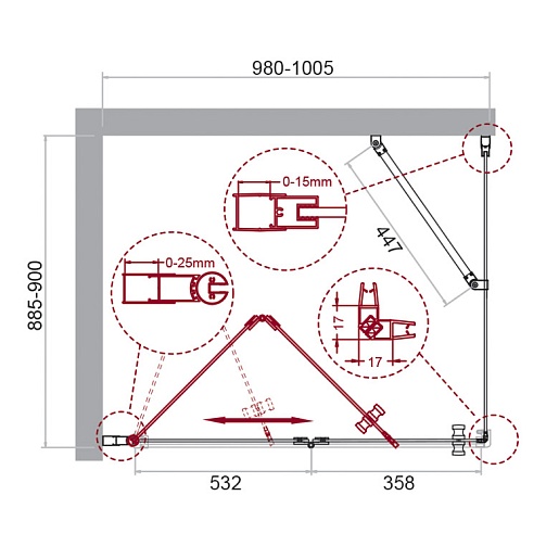 - Поддон, барьер приобретаются отдельно.
