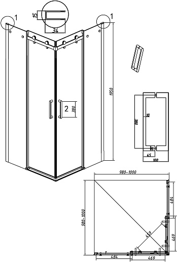 - Размер (ШxГxВ): 100 x 100 x 195 см.