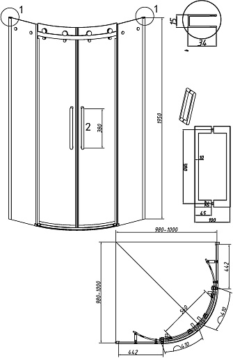 - Размер (ШxГxВ): 90 x 90 x 195 см.