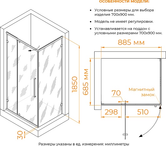 - Размеры с диапазоном регулировок (ШxГ): 885 x 685 мм.