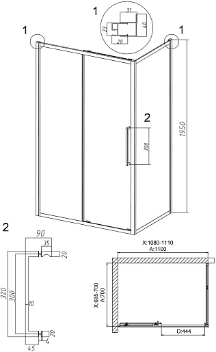 - Раздвижная дверь: одна неподвижная и одна сдвижная створка.