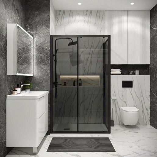 Grossman Душевой уголок Cosmo 120x70x195 профиль черный матовый стекло тонированное