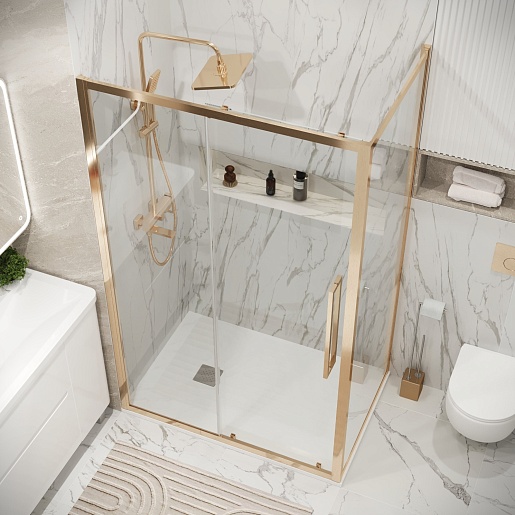 Душевой уголок Grossman Cosmo 120x90x195 профиль золото сатин стекло прозрачное - арт. 120.K33.02.1290.32.00.