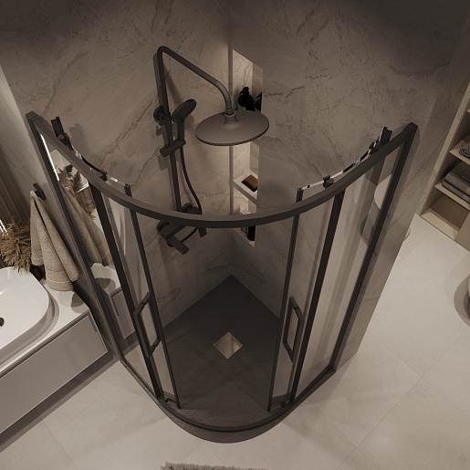 Grossman Душевой уголок Cosmo 90x90x195 четверть круга профиль черный матовый стекло прозрачное