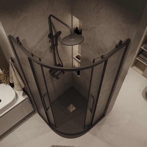 Grossman Душевой уголок Cosmo 90x90x195 четверть круга профиль черный матовый стекло шиншилла