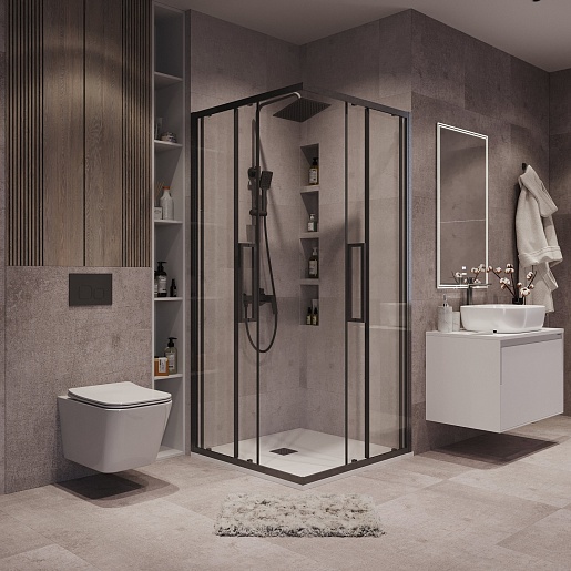 Душевой уголок Grossman Cosmo 90x90x195 профиль графит сатин стекло прозрачное - арт. 300.K33.02.9090.42.00.