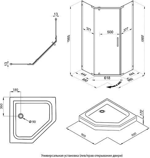 Душевой уголок Triton Дека-Графит 90x90 - арт. Щ0000073925.
