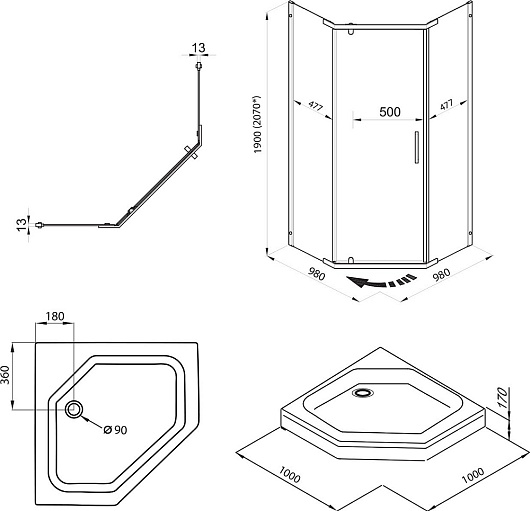 Triton Душевой уголок Дека-хром 100/100 Щ0000056816