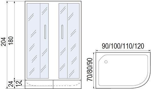 Мономах Душевой уголок ДУ 90/70/180 МЗ BL L/R