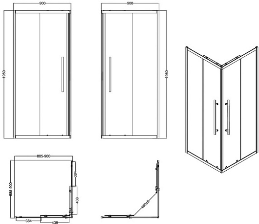 - Размер: 900x900x1950 мм.