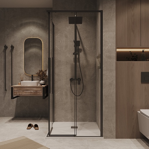 Душевой уголок Grossman Galaxy 100x100x195 профиль черный матовый стекло прозрачное - арт. 300.K33.01.1010.21.00.
