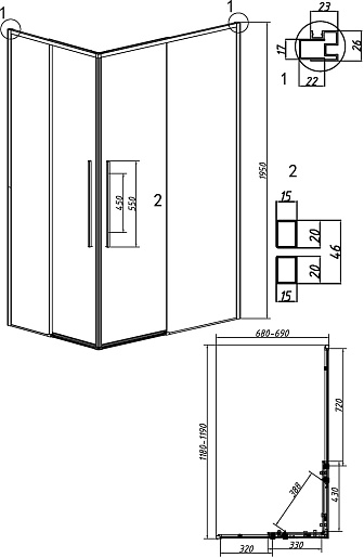 - Раздвижные двери: две неподвижные и две сдвижные створки.