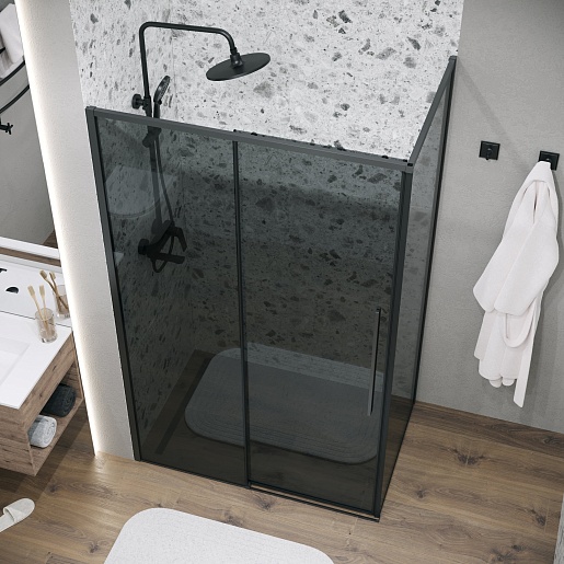 Душевой уголок Grossman Galaxy 140x70x195 профиль черный матовый стекло тонированное - арт. 120.K33.01.1470.21.10.
