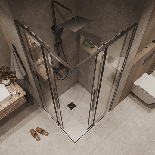 Душевой уголок Grossman Galaxy 70x70x195 профиль графит сатин стекло прозрачное - арт. 300.K33.01.7070.42.00.