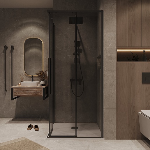 Душевой уголок Grossman Galaxy 80x80x195 профиль черный матовый стекло тонированное - арт. 300.K33.01.8080.21.10.