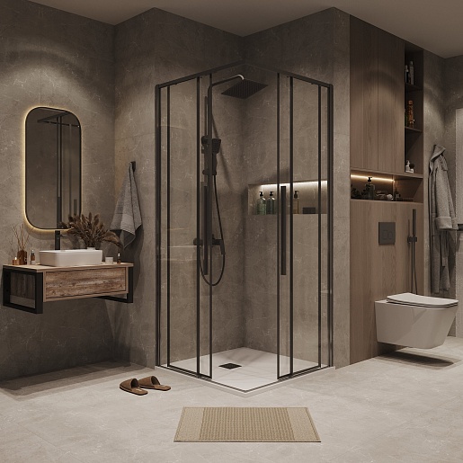 Душевой уголок Grossman Galaxy 80x80x195 профиль графит сатин стекло прозрачное - арт. 300.K33.01.8080.42.00.