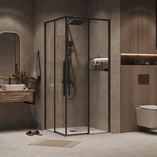 Душевой уголок Grossman Galaxy 90x90x195 профиль черный матовый стекло прозрачное - арт. 300.K33.01.9090.21.00.