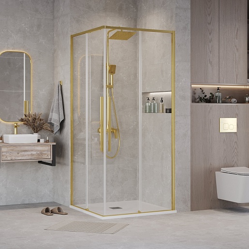Душевой уголок Grossman Galaxy 90x90x195 профиль золото сатин стекло прозрачное - арт. 300.K33.01.9090.32.00.