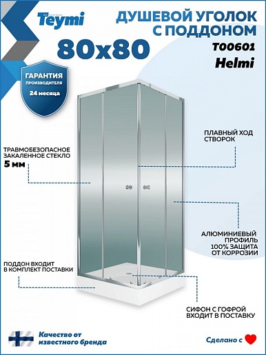 Teymi Душевой уголок Helmi 80х80 с поддоном T00601