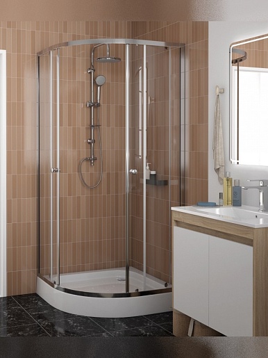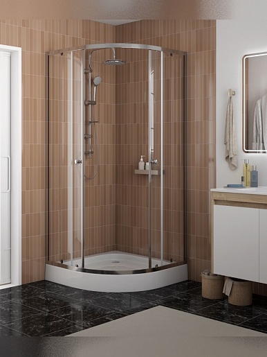 - Акриловый поддон с антискользящей поверхностью и шестью регулируемыми ножками.