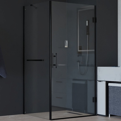 RGW Душевой уголок Hotel HO-045-1B (HO-011B + Z-060-2B + O-204B) 90x90 профиль черный стекло прозрачное