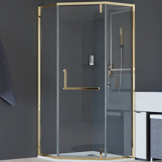 Душевой уголок RGW Hotel HO-084Gb 100x100 профиль золото брашированное стекло прозрачное - арт. 350608400-016.