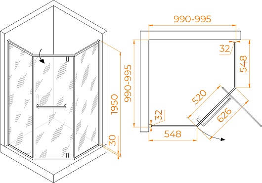 - Размеры с диапазоном регулировок (ШxГ): 990-995 x 990-995 мм.