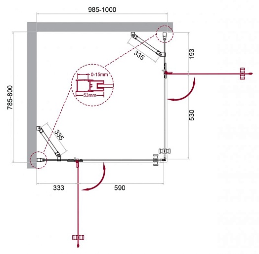 - Поддон, барьер приобретаются отдельно.