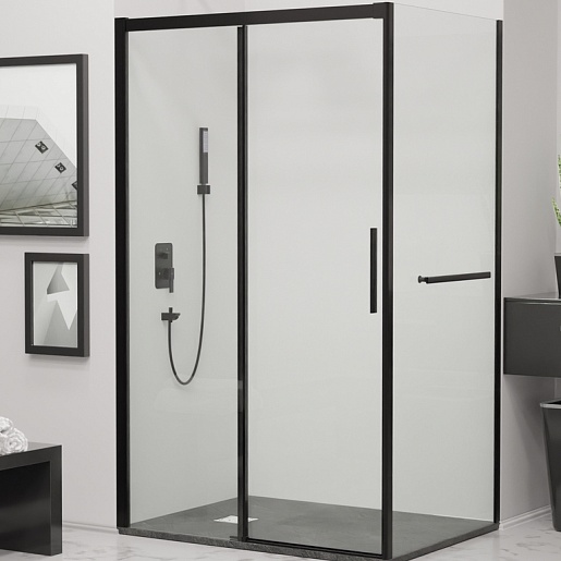 Душевой уголок RGW Leipzig LE-41-1B (LE-12B + Z-060-2B) 110x90 профиль черный стекло прозрачное - арт. 341241119-014.