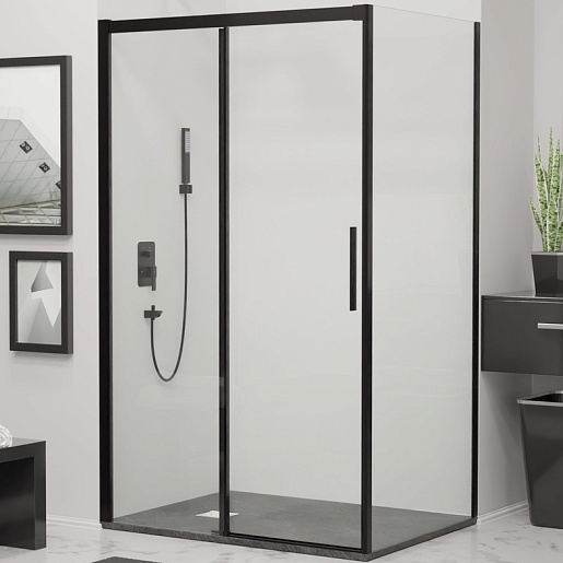 RGW Душевой уголок Leipzig LE-41B (LE-12B + Z-050-2B) 100x100 профиль черный стекло прозрачное