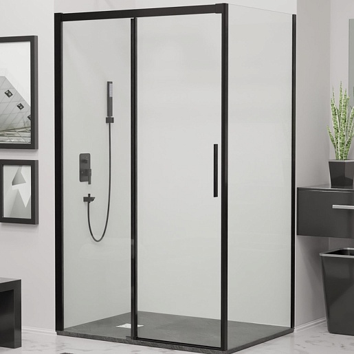 Душевой уголок RGW Leipzig LE-41B (LE-12B + Z-050-2B) 200x100 профиль черный стекло прозрачное - арт. 341241200-014.