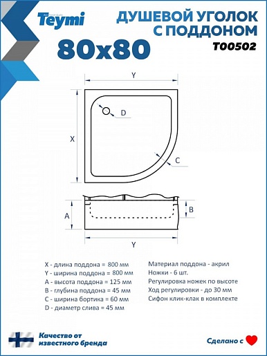 Teymi Душевой уголок Lina 80х80 с поддоном T00502