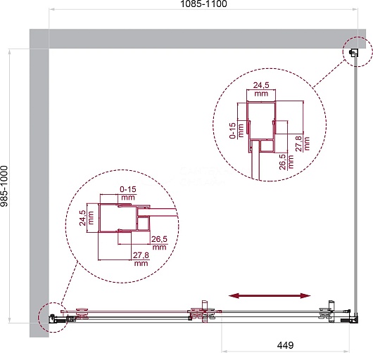 - Одна раздвижная дверь.