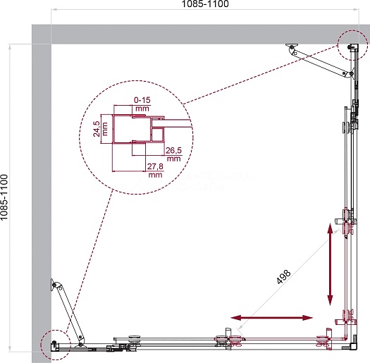 BelBagno Душевой уголок Luce 110/110 LUCE-A-22-90+20-P-Cr профиль хром стекло рифленое