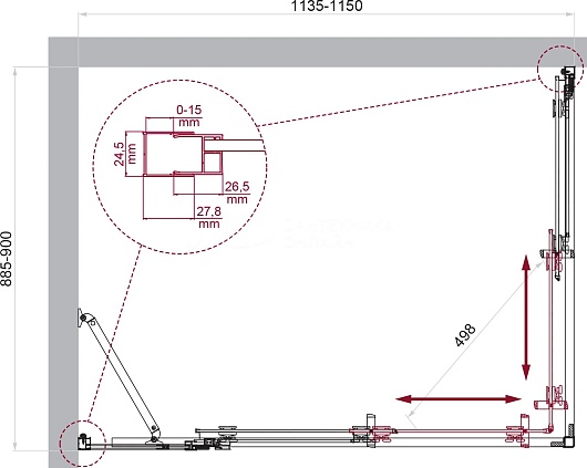 - Ширина входа: 49.8 см.