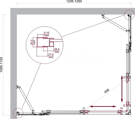 - Душевой уголок прямоугольный.